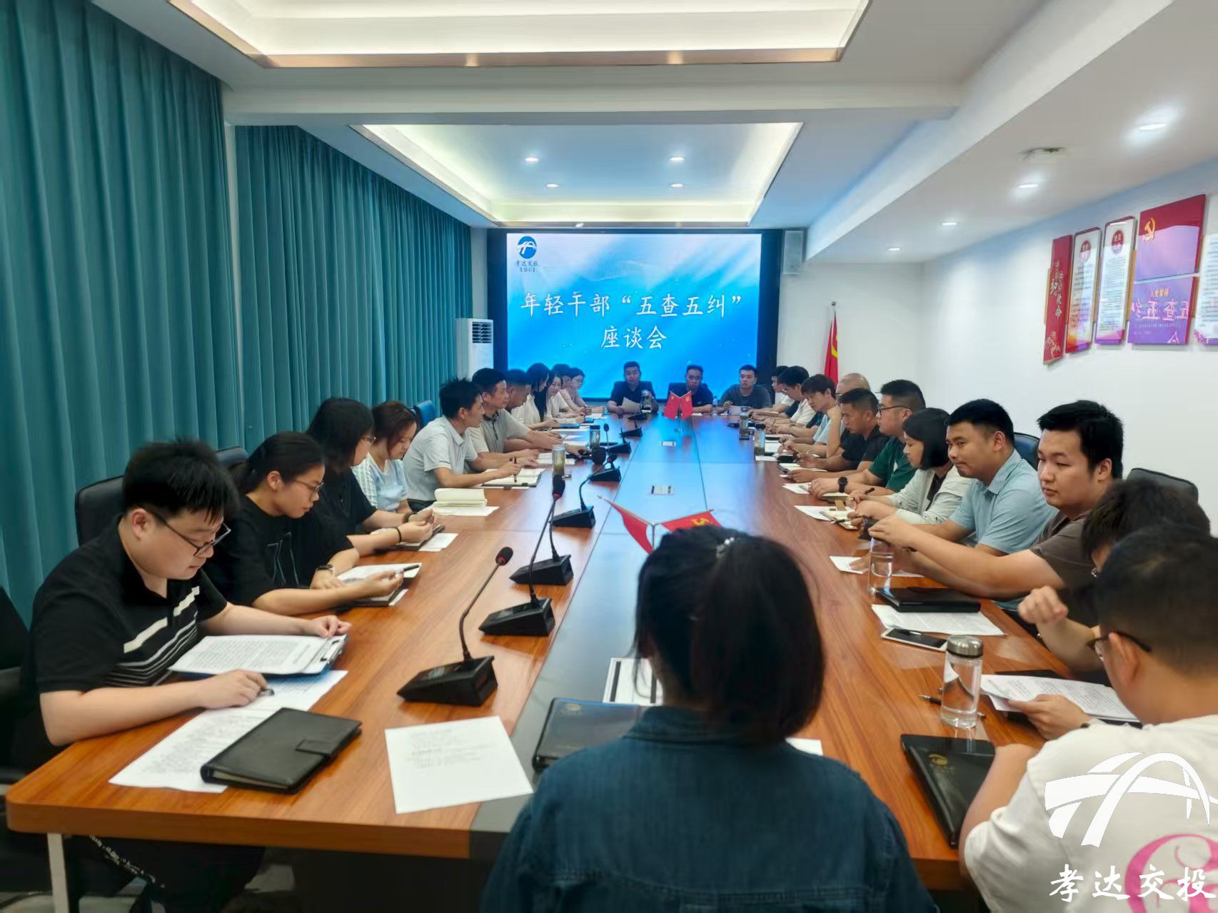 發(fā)布時間: 2025-08-06 09:15:00為進一步加強對年輕干部的教育、管理和監(jiān)督,引導其系好廉潔從業(yè)“第一??圩?rdquo;,8月5日,孝達交投組織27名35歲以下年輕干部召開座談會。座談會聚焦年輕干部思想動態(tài)、作風表現(xiàn)、“五查五糾”等情況,進行了一次深入的“政治體檢”和思想洗禮。公司紀委書記洪劍東,副總經(jīng)理殷國勝、張鋒出席會議。